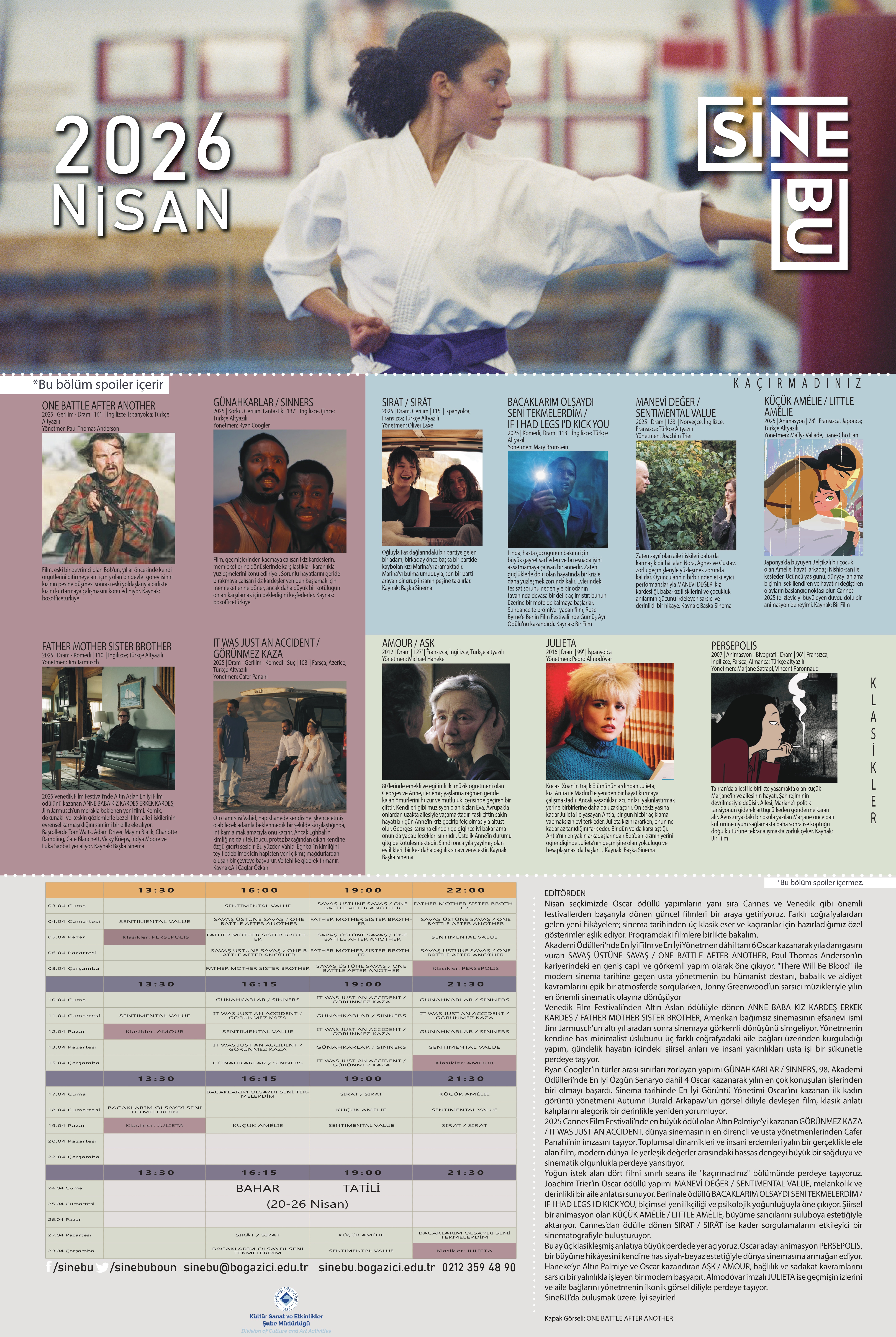 Nisan 2026 programımızı okunabilir (excel) formatta buradan edinebilirsiniz.